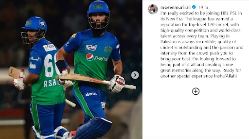 मोईन अली ने सोशल मीडिया पर लिखा कि PSL अब दुनिया की शीर्ष टी-20 लीगों की कतार में आ चुकी है। हर टीम में अंतरराष्ट्रीय स्तर के खिलाड़ी मौजूद हैं और वहां खेलते हुए ऊर्जा और रोमांच का अनुभव अलग ही होता है।